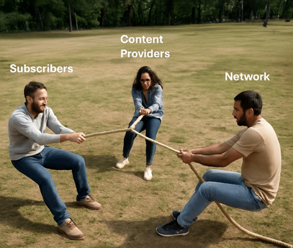 As new forms of connectivity are deployed, it is valuable to reflect on the lessons learned from the evolution of mobile internet access. Currently, in Europe, this is the subject of an ongoing ‘fair share’ debate, where the value provided by traditional telco access is perceived to be diminishing relative to the influence of large content providers. End users expect to access the internet in a cost-effective and unrestricted manner—free from governmental or regulatory limitations—while continually demanding more content.. Effectively, this is a supply and demand problem with telecom as gatekeeper.